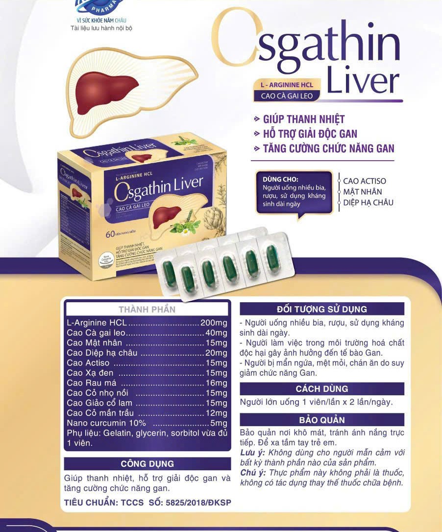 (HD) Bổ gan cao cấp Osgathin Liver-Hộp 12 vỉ x 5 viên