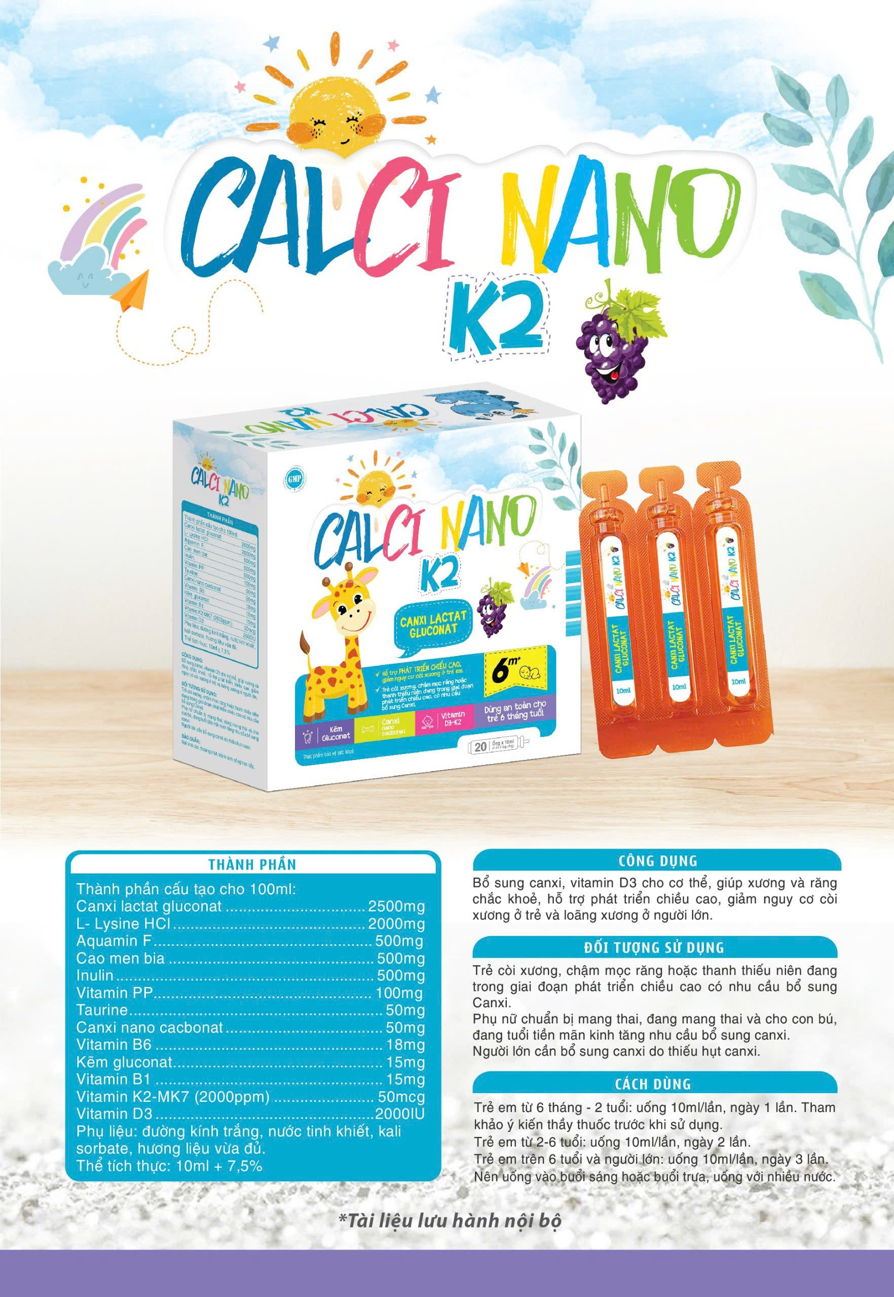 (HD) Calci Nano K2 ống cao cấp hộp có khay-Hộp 20 ống x 10ml canxi Calcium