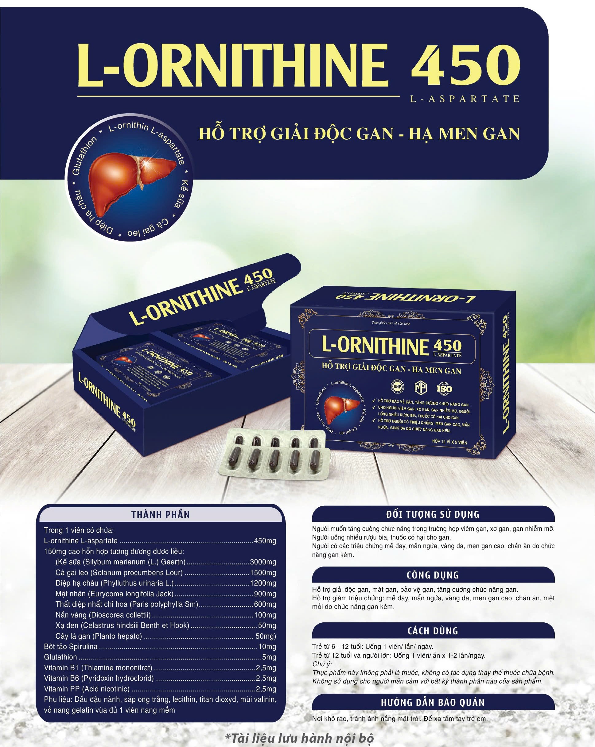 (HD) Giải độc Gan-Hạ Men Gan L-ORNITHINE 450 cao cấp- Hộp 12 vỉ x 5 viên