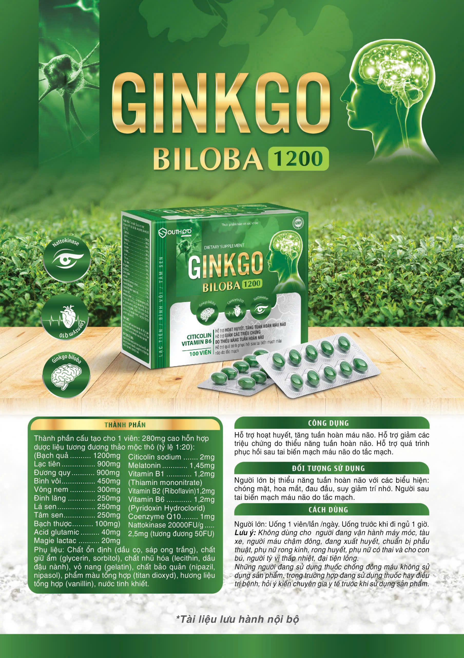 (HD) Viên uống bổ não cao cấp Ginkgo Biloba 1200 với CoenZyme Q10-Citicoline-Melatonin-Tâm sen- Hộp 10 vỉ x 10 viên Bổ não-Mắt-Bổ tim