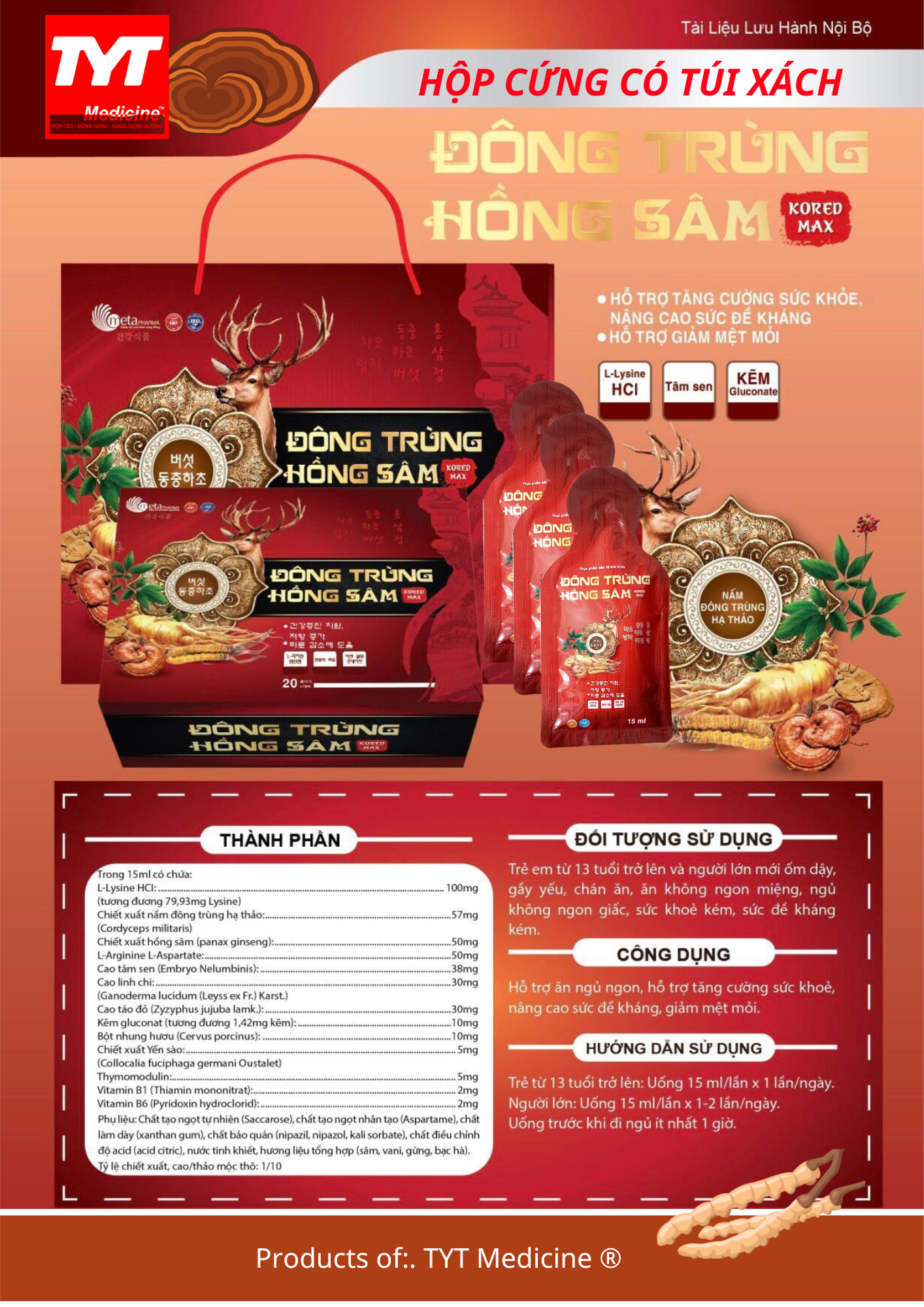 - Quy cách: Hộp 20 gói Sâm nước đông trùng x 15ml