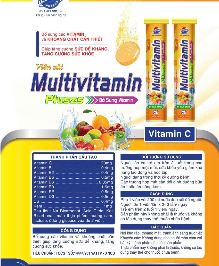 Viên Sủi 4g Multivitamins Pluszs Vị Cam tươi ngon-Tuýp 20 viên